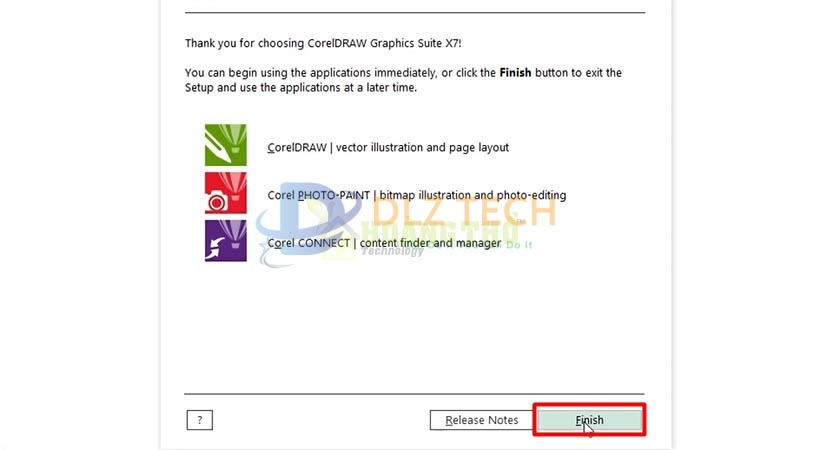 Cuối cùng Dlztech đã hướng dẫn các bạn cách cài thành công phần mềm Coreldraw x7. Các bạn có thể xem thêm Video hướng dẫn để chắc chắn 100% cài đặt thành công nhé.