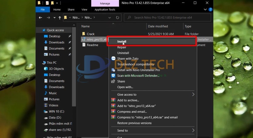 Bước 2 : Chọn file nitro_pro13x64 và nhấn Install.